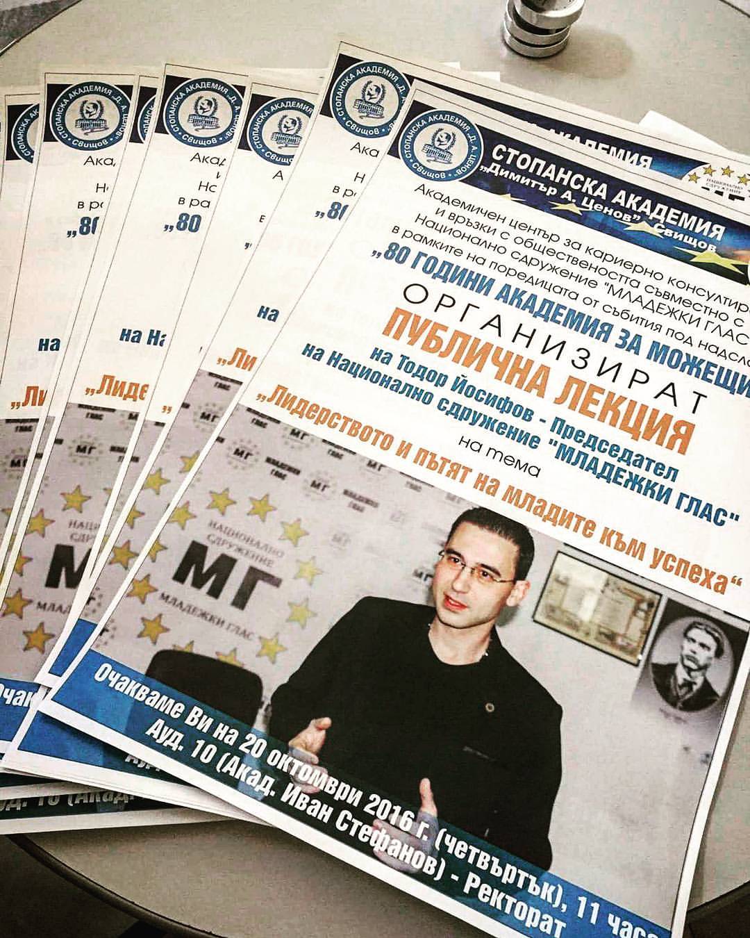 Ако имате желание да отправите покана към Тодор Йосифов да ръководи лекция при Вас или да проведете семинар с негово участие по определена тема, може да отправите запитване за ангажимент с Агенция за връзки с обществеността Bellissima PR Agency