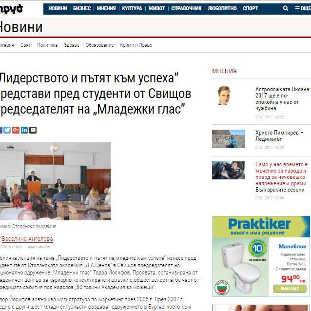 Избрани моменти от лекции пред ученици и младежи, аудитории по покана на различни организации и институции.